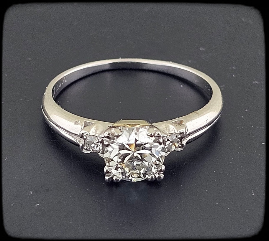 Vintage Platinum Engagement Ring 0.86ct Old European Cut Diamond Fishtail Setting Sz 6.75