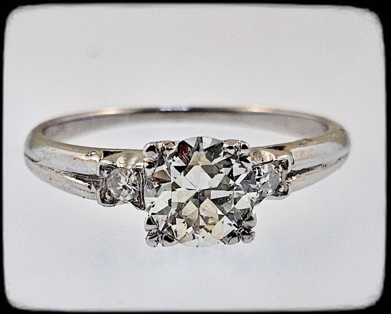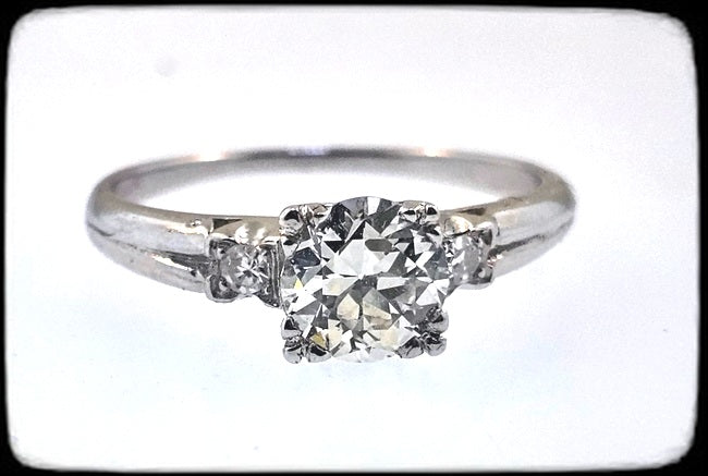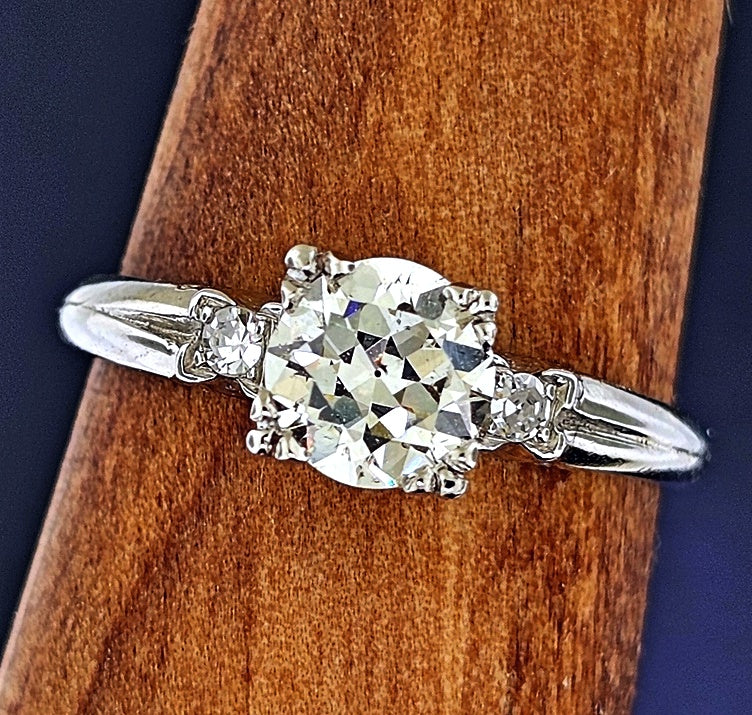 Stunning Vintage Platinum Engagement Ring with Old European Cut Diamond — Fishtail Setting — Size 6.75